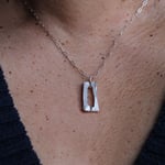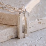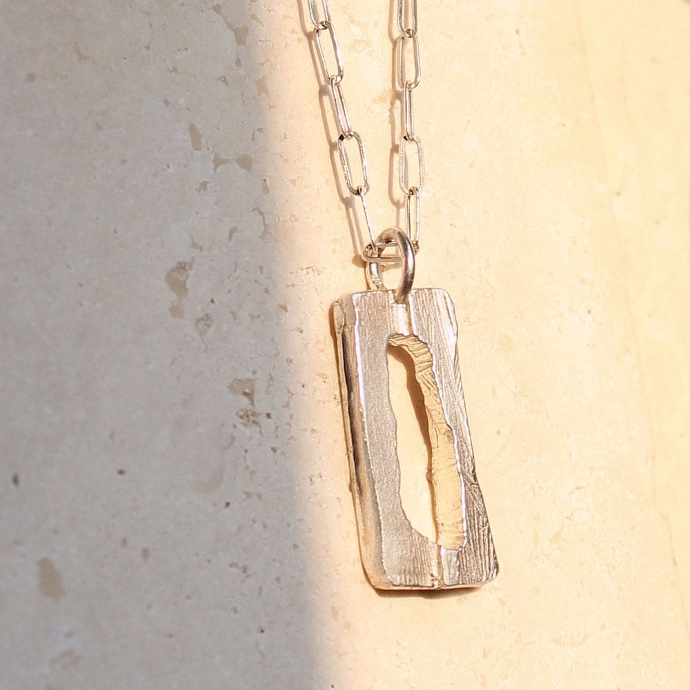 Two techniques frame each other in this design. The slightly indented smooth rectangle surface meets the lightly textured channels on either side. It's subtle, it's simple, it's balanced. A modern design to wear every day. Carrying a hint of yin and yang energy, the pendant feels grounding when it settles against your neck.